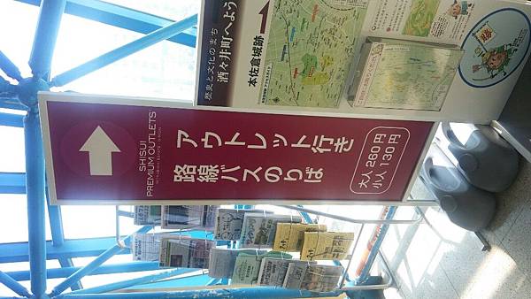 搭JR電車要去outlet可以到酒酒井站下車,之後閘口出來,前方就會看到一個指示紅色看板告訴你右轉,因為巴士停靠站就在車站出來右轉的一樓地面上.